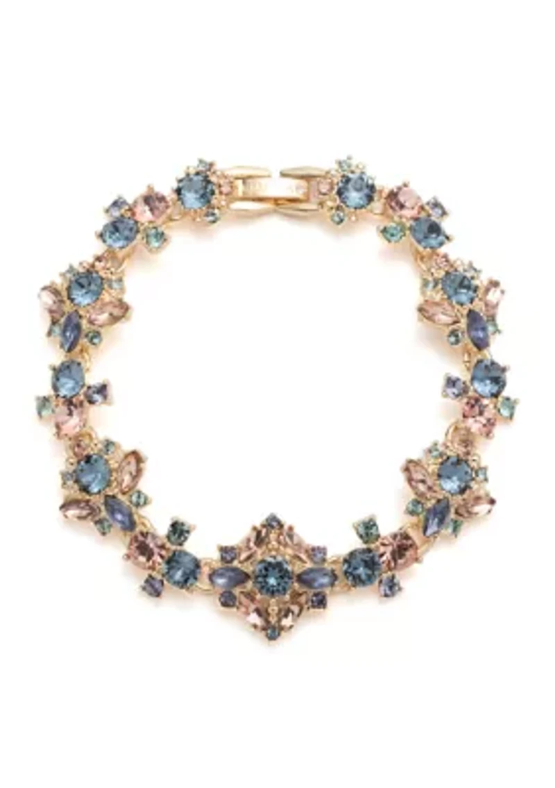 Crafted for comfort without compromising shine, this flexible bracelet from Marchesa wraps the wrist in a line of crystals that shift and shimmer with every gesture. Sleek enough to wear solo, striking enough to stack. Foldover closure Polished finish Imported Product Specifications 8" L Material & Care Metal, Gold-tone metal, crystal Clean with a soft cloth