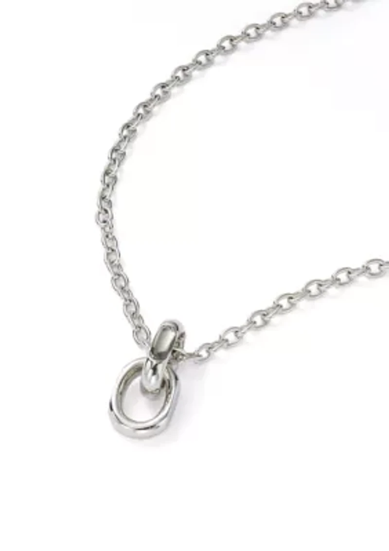 This exquisite necklace is a fusion of elegance and simplicity. Crafted from polished rhodium-plated metal, it features a delicate chain adorned with sculpted oval links. The highlight of this necklace is the captivating pendant, showcasing a subtle crystal stone that adds a touch of sparkle. Perfect for everyday wear, this necklace secures with an adjustable lobster clasp closure, ensuring a comfortable and secure fit. Made from high-quality materials, this necklace is a must-have addition to your jewelry collection. Lobster closure Polished finish Imported Product Specifications 16" + 3" extender Material & Care Rhodium-plated metal Clean with a soft cloth
