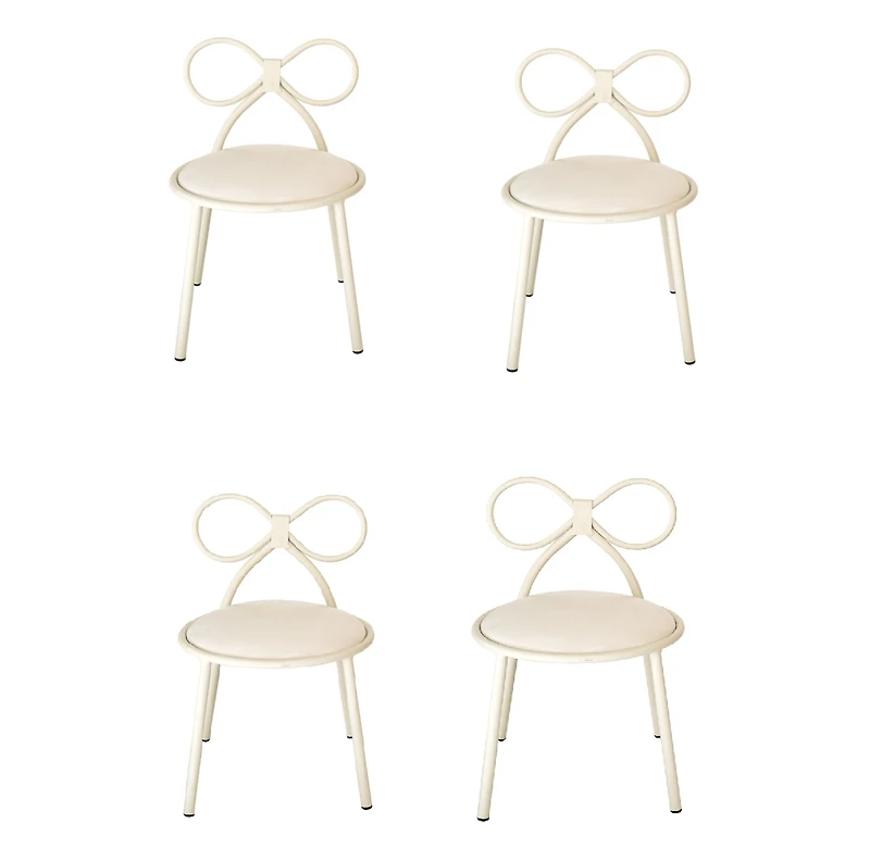Set Of 4 Metal Kids Bow Chair With White Vinyl Seat Cushion suits every room.