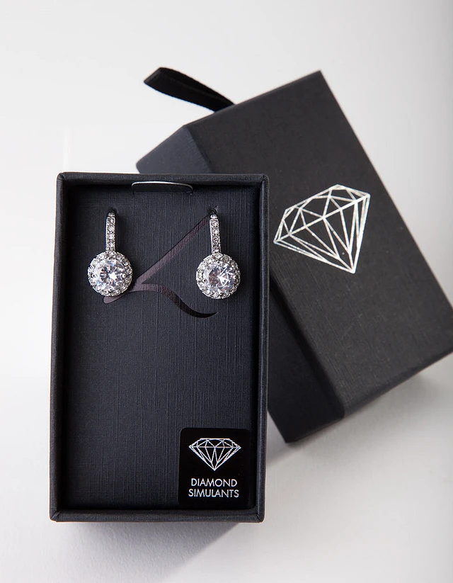 Rhodium Plated Clear Round Cubic Zirconia Drop Earrings