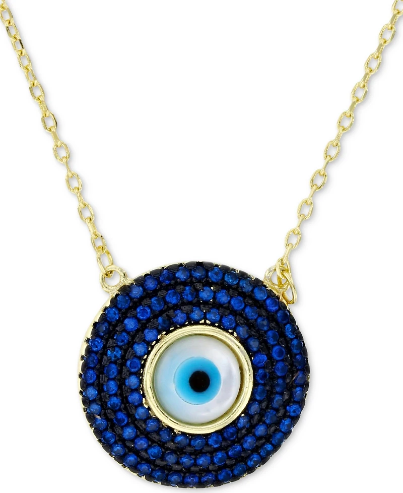 Cubic Zirconia & Enamel Evil Eye Pendant Necklace 14k Gold-Plated Sterling Silver, 16" + 1" extender