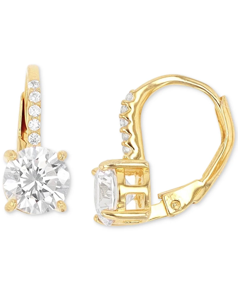 Cubic Zirconia Leverback Earrings in 14k Gold-Plated Sterling Silver