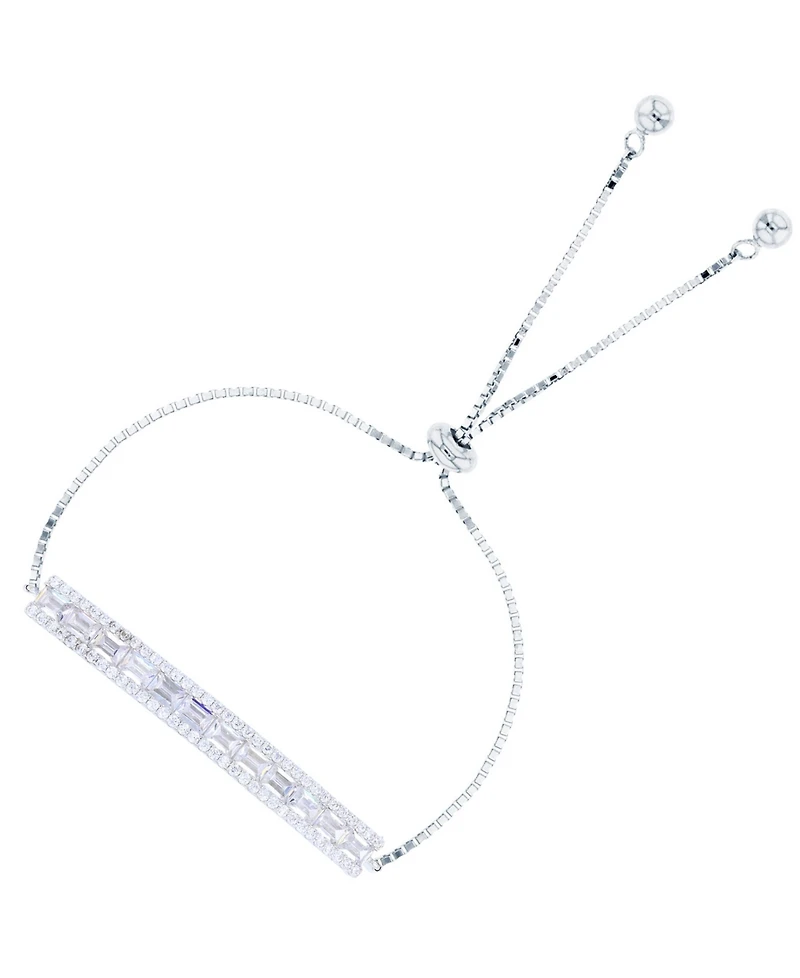 Cubic Zirconia Round and Baguette Bar Adjustable Bolo Bracelet Sterling Silver (Also 14k Gold Over Silver)