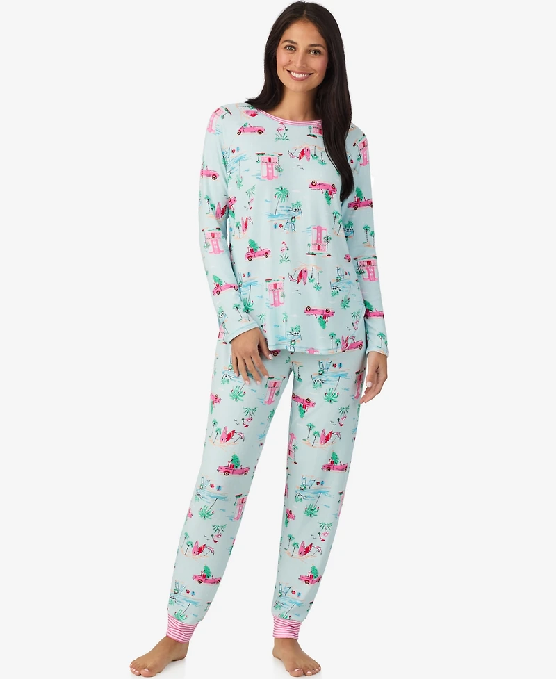 Designed for a cozy fit, this brushed sweater knit pajama set by Cuddl Duds features a playful penguin print. The long-sleeve top includes raglan sleeves and a contrast neckband, while the matching jogger pants are finished with coordinating cuffs for a fun and comfortable look.