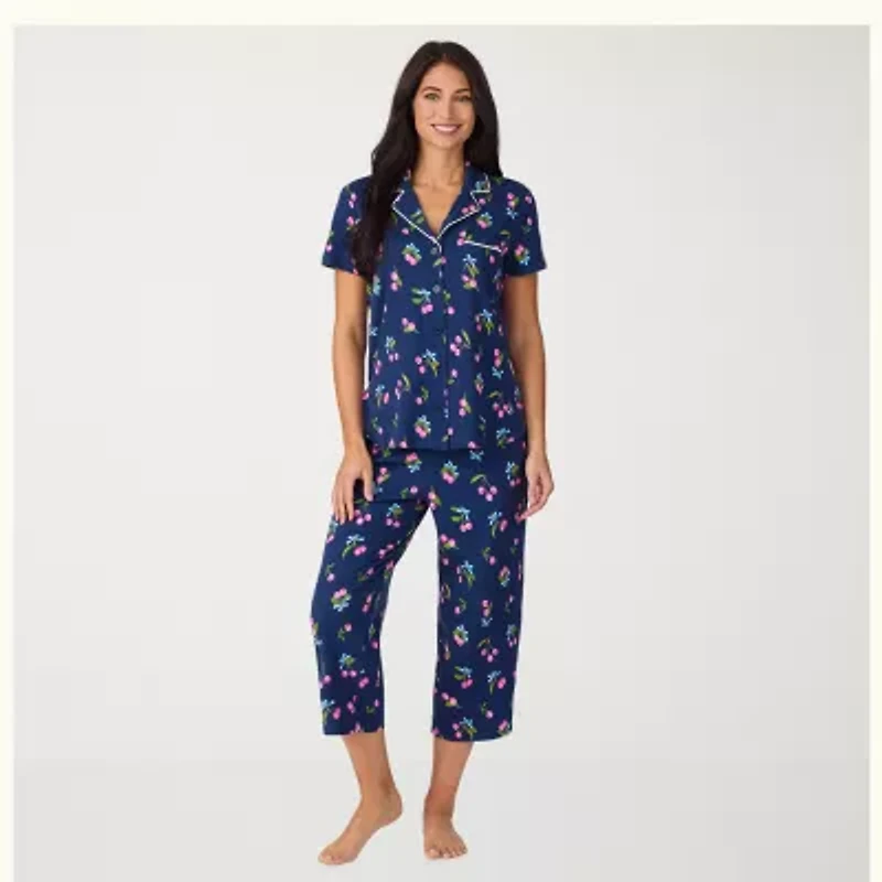 Cuddl Duds Womens V-Neck Short Sleeve 2-pc. Pajama Sets