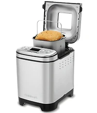 From Cuisinart, the Compact Automatic Bread Maker features: Bread Maker Everybody loves homemade bread, but not everybody has time to make it. Let Cuisinart do it for you Our versatile and compact automatic bread maker offers a variety of crust colors and loaf sizes, as well as 12 preprogrammed menu options. Foolproof recipes include everything from gluten-free and artisan breads to jams and sauces. With a convenient 13-hour delay-start timer, that wonderful aroma of just-baked bread can be waiting for you when you wake up. Compact vertical bread maker with stainless steel exterior 12 preprogrammed menu options – fully automatic, easy to use 3 crust shades – light, medium, or dark Bakes up to a 2-pound loaf Viewing window to monitor the process Removable kneading paddle and bread pan Interior light to check bread as it bakes Easy-to-read LED display Bake-only option 13-hour delay start – fresh bread, anytime Power failure backup BPA-free Approx. 10.25" L x 13.25" W x 11.25" H Approx. unit weight : 11lbs Imported.