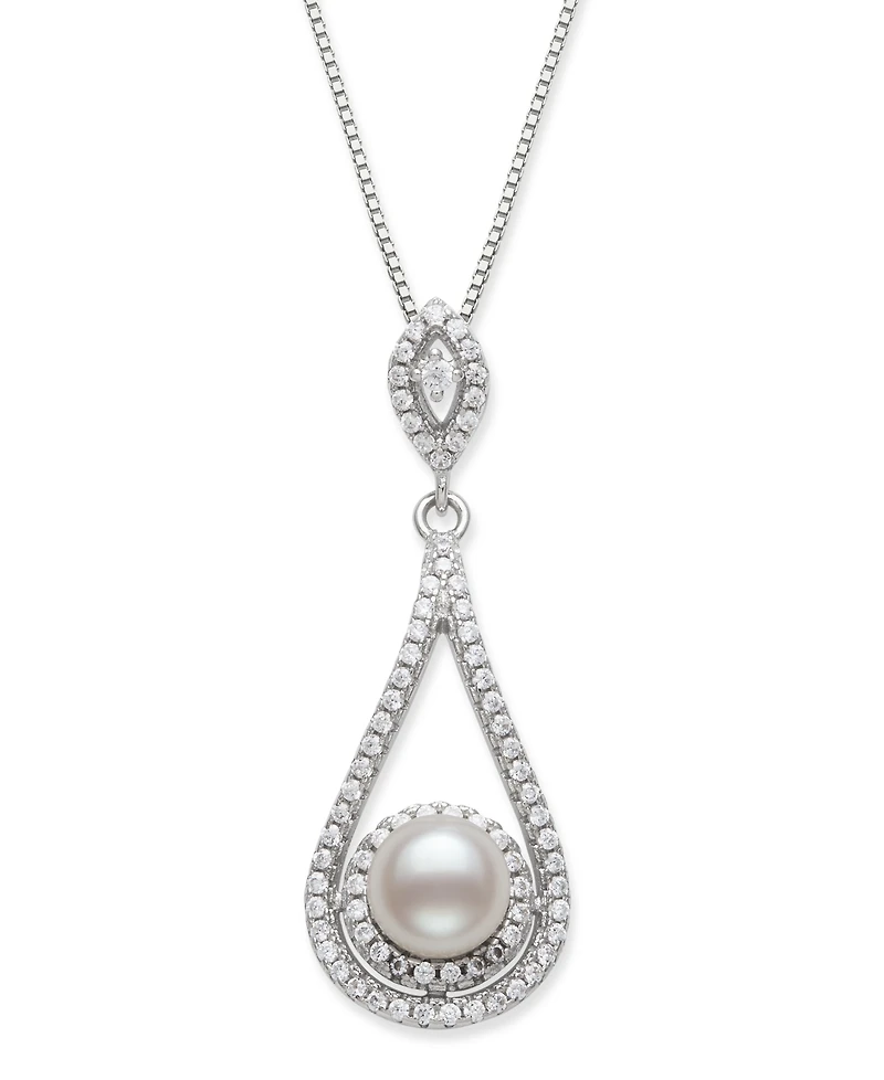 Cultured Freshwater Pearl 6.5-7mm and Cubic Zirconia Drop Pendant in Sterling Silver with 18" Chain in Franklin, TN