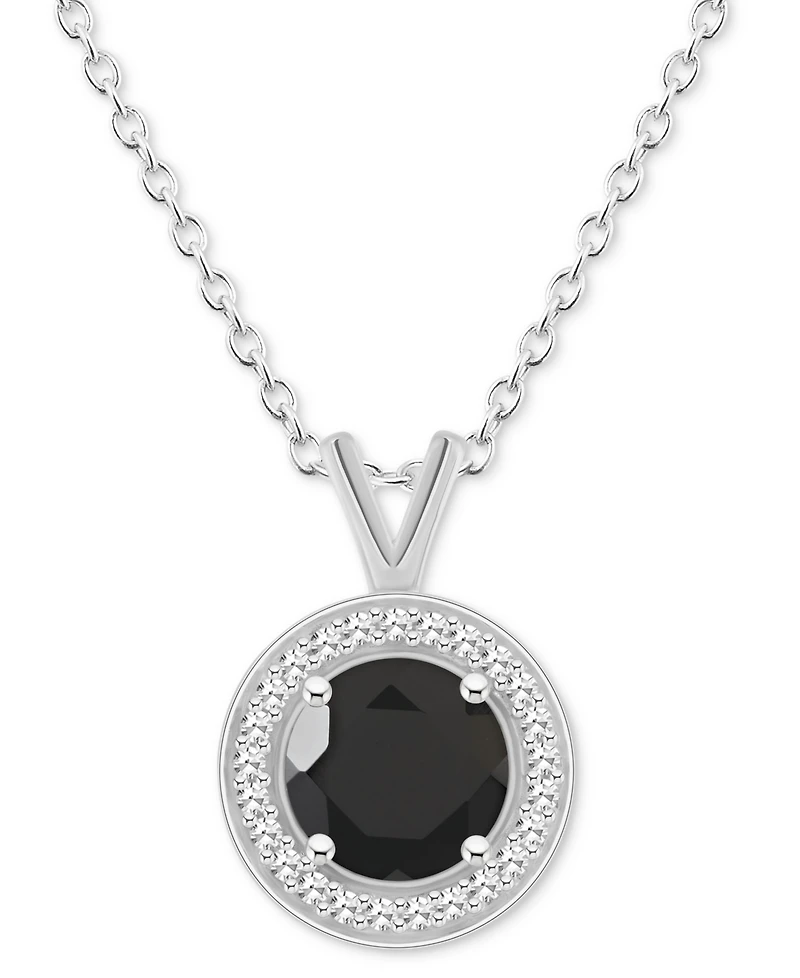 Glimmering labradorite is encircled by diamonds in this elegant silver pendant necklace. Also available in onyx, turquoise and cultured freshwater pearl.