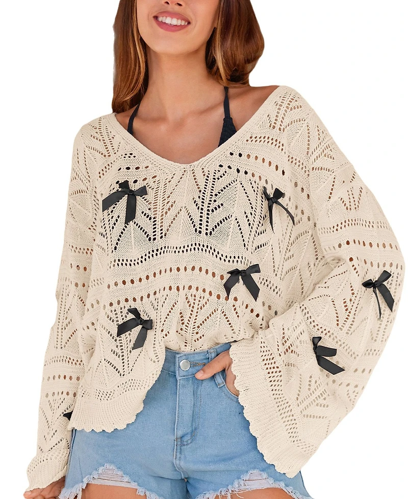 Take it slow in the Knot Today Beige Cover-Up Top! The v-neckline, long sleeves, and bow detail make it a sweet piece to layer. Product code: CAA07A5M016CA