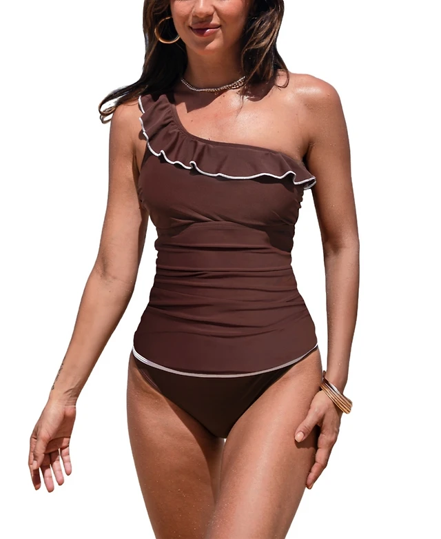 Cupshe Women's One Shoulder Neck Asymmetrical Ruffles Tankini Sets