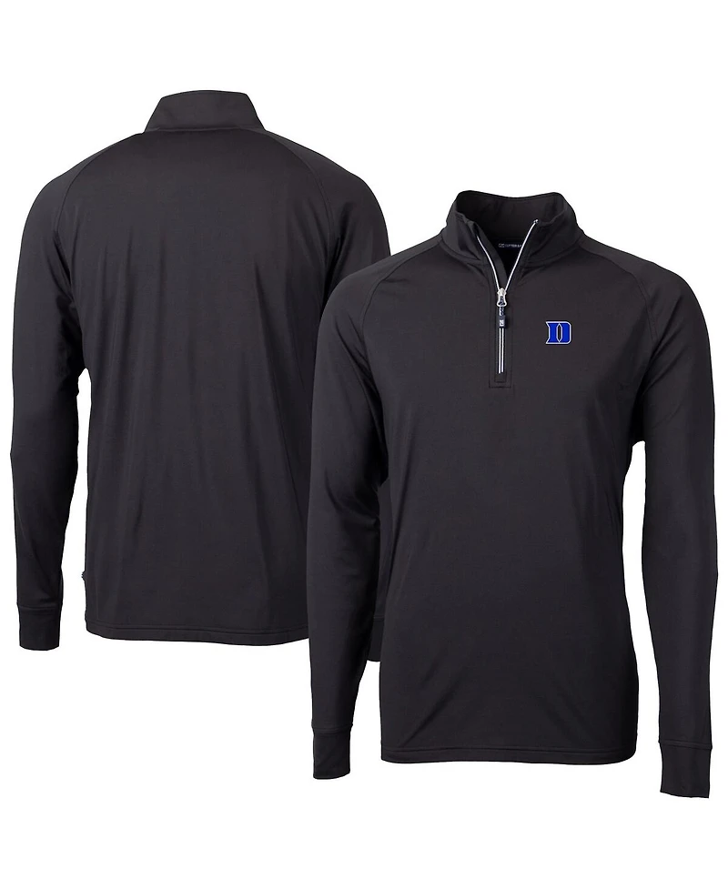 Cutter Buck Men's Black Duke Blue Devils Adapt Eco Knit Stretch Raglan DryTec Quarter-Zip Sweatshirt