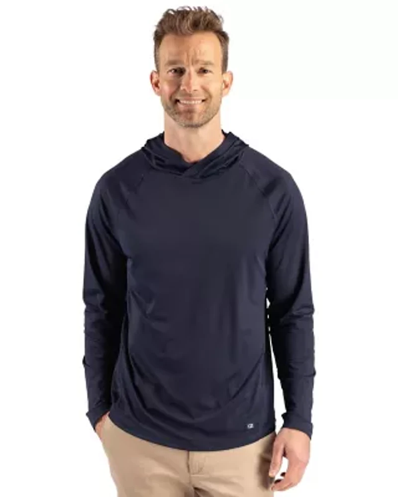 Designed for those who move seamlessly between meetings, and moments outdoors, the Cutter & Buck Prospect Recycled Featherlight Stretch Mens Big & Tall Hooded Pullover delivers elevated performance you can rely on. Part of the Epic Confidence Collection, the airy comfort, soft & smooth jacquard weave delivers a sophisticated finish that transitions effortlessly from everyday wear to weekend comfort. Crafted with breathable, moisture-wicking stretch fabric, this layer is built to support movement without sacrificing style. The subtle jacquard texture elevates the look, while moisture-wicking stretch fabric ensures comfort. Raglan sleeves allow for easy movement, and a streamlined hood adds functional coverage without compromising polish. Made from GRS-certified post-consumer recycled polyester, this piece supports responsible manufacturing while delivering durability and quality. With UPF 50+ UV protection, it’s a dependable layer for sun-filled days—urban or outdoors. - 92% Recycled Polyester, 8% Spandex - Made with GRS-certified post-consumer recycled polyester - Airy comfort, all-day ease - Long sleeve hooded pullover - Raglan sleeves for enhanced mobility - Jacquard texture for elevated style - Moisture-wicking performance fabric - UPF 50+ UV Sun Protection - Machine Wash Long sleeve Solid Egypt Imported Material & Care Polyester/Spandex Machine washable