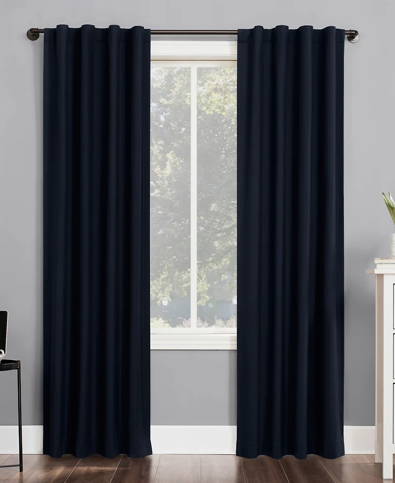 The Sun Zero Cyrus Curtain Panels provide the ultimate in light blocking technology to keep out even the harshest of light. Sun Zero Total Blackout technology is laboratory tested to block out light and limit outside noise by up to 30%. Comfort is optimized with thermal insulation that helps keep summer heat and winter chill out of your home. Hang in your entertainment room to eliminate screen glare and mitigate distracting outside noise, or in your bedroom for enhanced privacy and a sounder, more uninterrupted sleep.