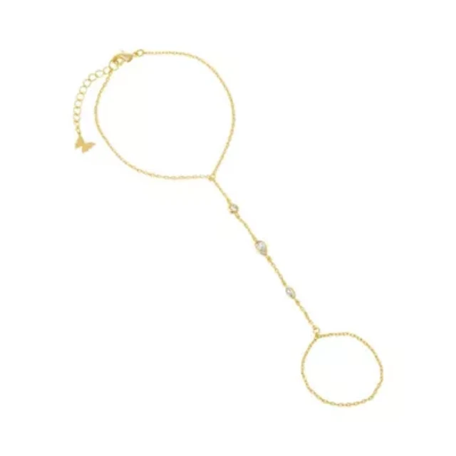 Gold Plated Cubic Zirconia Hand Chain Bracelet