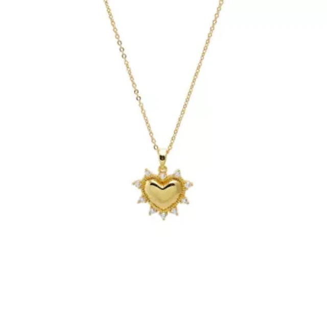 Gold Sterling Plated Puff Heart Pendant Necklace