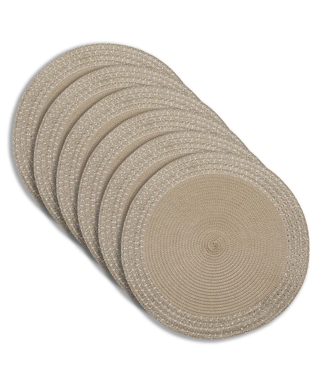 Dainty Home Lurex 15" Round Woven Placemats Set of 6 - Durable, Reversible & Non-Slip Table Mats