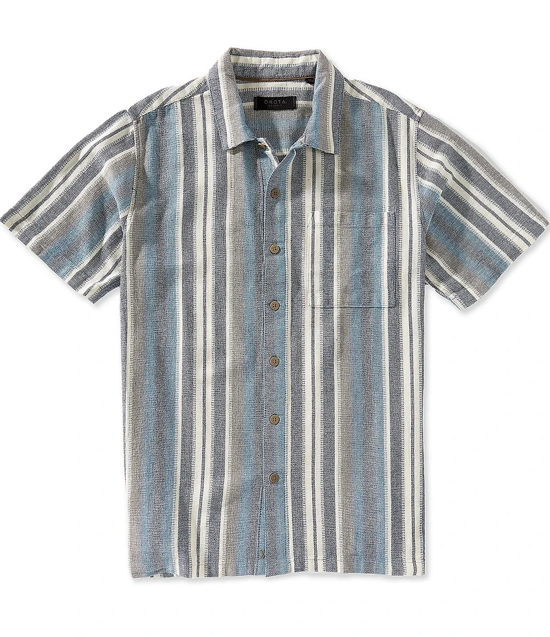 From Dakota Grizzly, this shirt features: Vertical, stripe pattern Camp collar Short sleeves Button-front closure Left chest pocket Cotton Machine wash/tumble dry Imported.