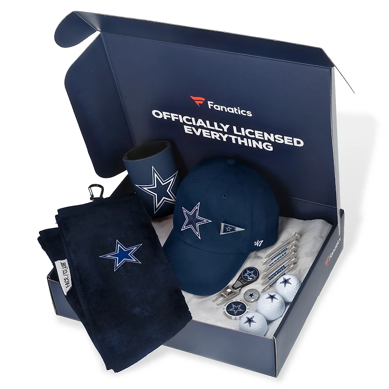 This exclusive Dallas Cowboys Fanatics Pack, valued at $105+, features timeless products that can be used season after season out on the links. Each Wincraft by Fanatics golf accessory has been carefully selected and is designed with classic Dallas Cowboys graphics. Also included is an unstructured, adjustable hat from '47 to cap off a fan assortment that's packed with value. This gift box is also perfect as a gift for any golfer who can't get enough of the Dallas Cowboys.