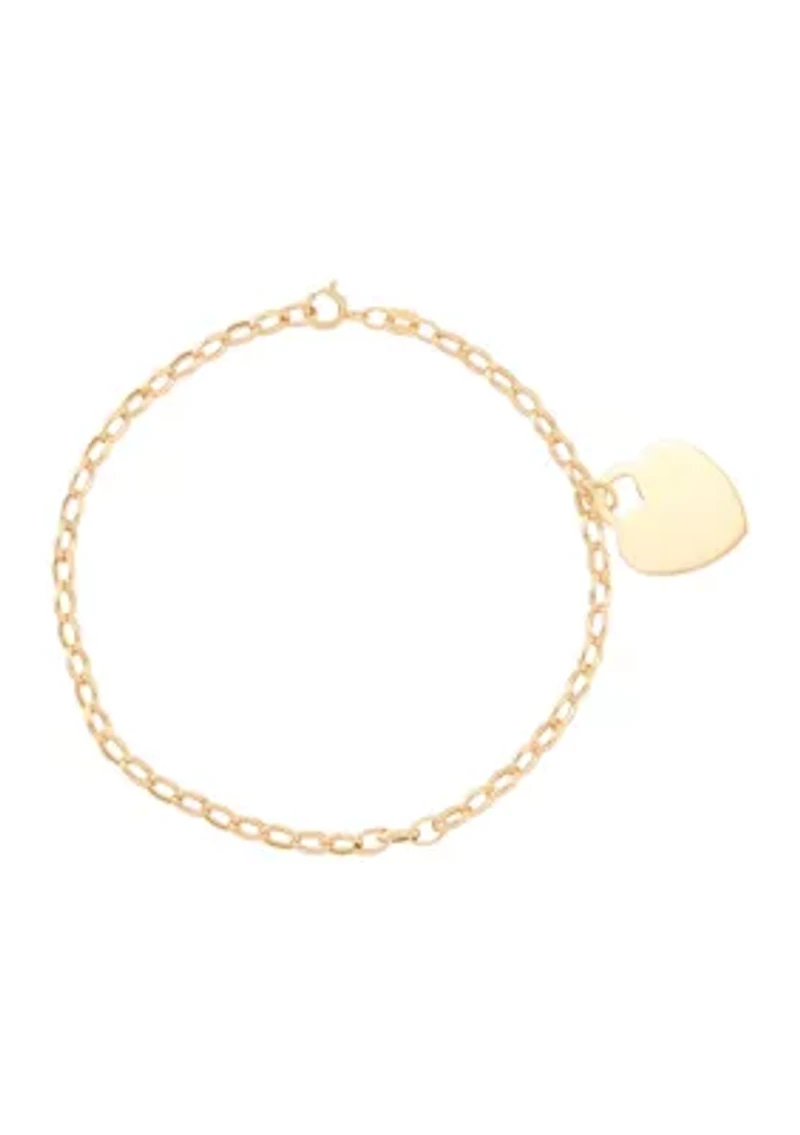 Indulge in the timeless elegance of this 14K yellow gold charm bracelet from Belk & Co. Its delicate heart-shaped charm adds a touch of grace to any ensemble. Secured with a reliable clasp, this bracelet ensures comfort and security. A perfect gift for any special occasion, symbolizing love and affection. Spring ring clasp closure Polished finish Imported Belk Exclusive Product Specifications 7.5" L Material & Care 14K Yellow Gold Clean with a soft cloth