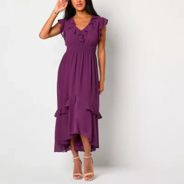 Jessica Howard Womens Short Sleeve High-Low Fit + Flare Dress