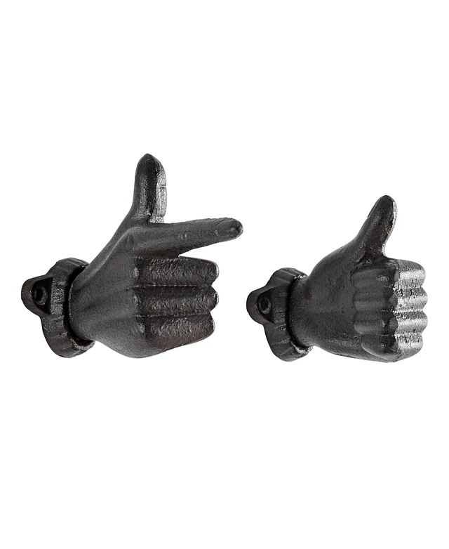 Danya B "Thumbs Up Pointing Finger" Cast Iron 2-Piece Wall Mount Hook Set