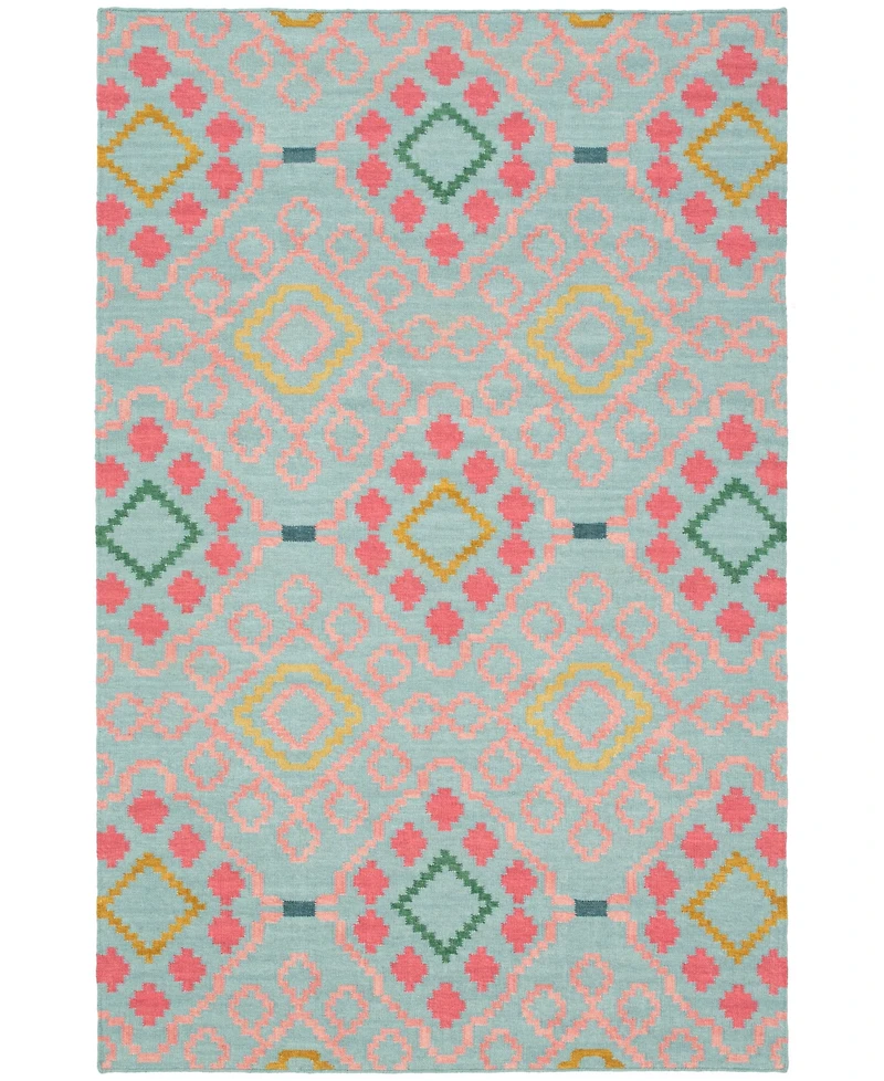 The Jelly Roll Handwoven Wool Rug features a unique design made to resemble a vintage document designer Kit Kemp keeps in her personal collection for creative inspiration. Handwoven by skilled artisans using wool and cotton into a statement piece that offers striking color combinations.