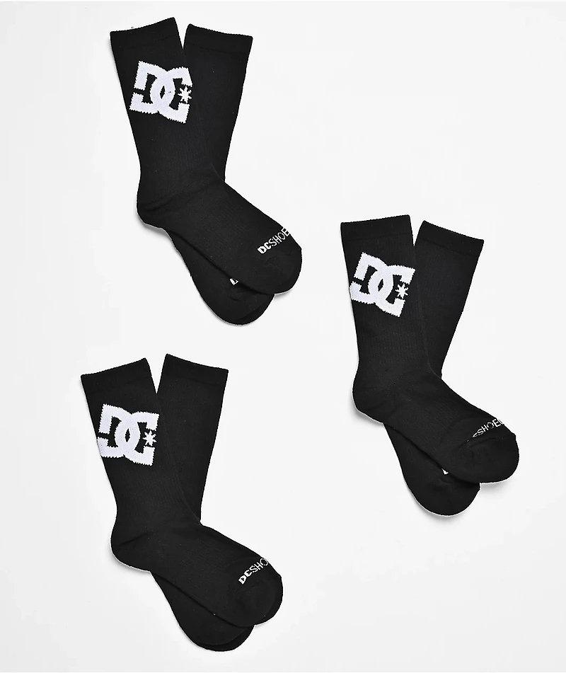 DC Graffik Logo 3 Pack Black Crew Socks