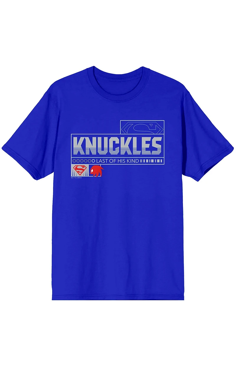 Rep two of your favorite heroes in one t-shirt! The officially licensed DC x Sega collab tee features a big, bold graphic of Superman's iconic logo alongside "Knuckles" and "The Last Of His Kind" - an eye-catching image that has been professionally printed against a royal blue background for long-lasting print quality. The short sleeves and crew neck offer comfort and style that are perfect for all-day, any-day wear, and since it's crafted from high-quality, 100% cotton, this tee ensures a soft and comfortable feel. When it's time for cleaning, simply machine wash it cold and tumble dry low for effortless care.