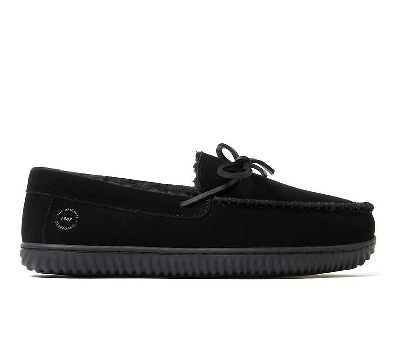 Dearfoams Douglas Slippers Traditional moc styling meets plush comfort in these genuine suede slippers. The tie detail and hand-stitched accents bring timeless appeal, while the soft lining and cushioned insole keep every step relaxed.