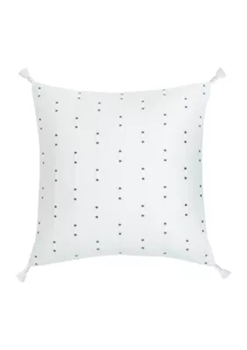 The embroidery detail is a beautiful repeated stitch line with diamond motifs. Firmness: medium 200-thread count Imported Product Specifications 18" x 18" Material & Care Polyester Cotton Machine washable