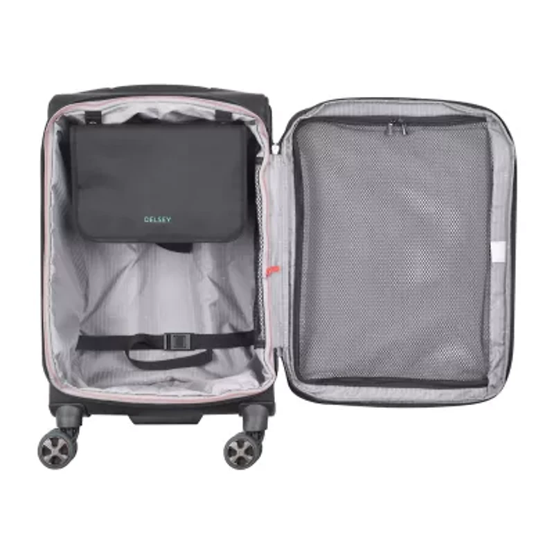 Form and function collide as the Duratec™ fabric construction looks sophisticated while Delsey’s patented zip Securitech® keeps your belongings safe. Designed for the savvy traveler, this bag features smooth rolling dual-density silent-core™ wheels to keep you effortless on the go.