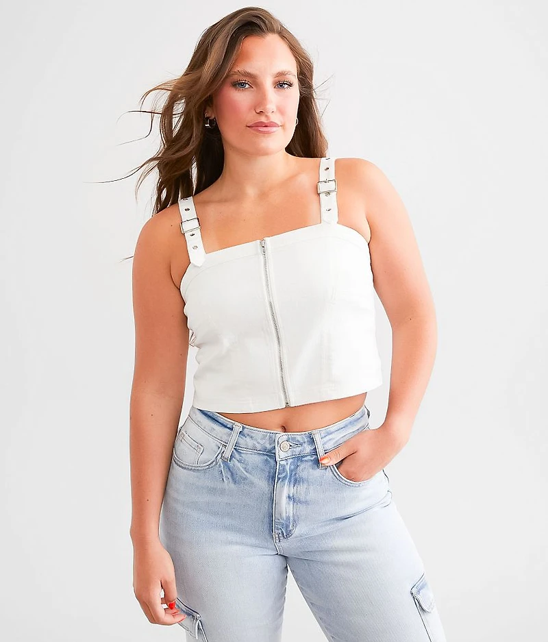 Square neck zip down cropped tank Adjustable straps Bust measures 34" on size small Body length up to 18" on size small