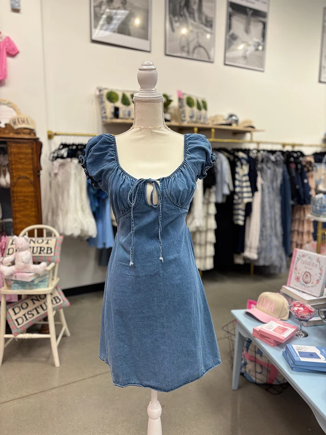 Girls 7-16 Printed Puff Sleeve Dress and Denim Vest Set