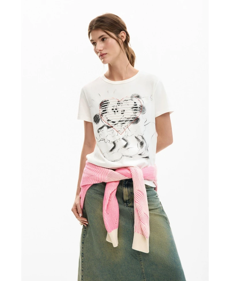 Desigual Women's Mickey and minnie Mouse heart t-shirt