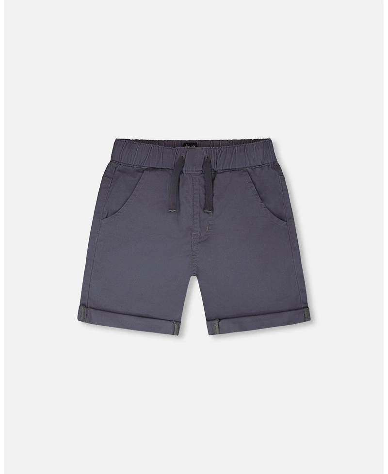 The stretch twill shorts in grey is a summer staple that blends comfort and style effortlessly. Designed with front slant pockets and folded hems, these bottoms offer a polished yet relaxed look for everyday wear. Made from soft stretch cotton twill with an elastic waistband and drawstring, these shorts move easily with boys and baby boys on their sunny adventures.