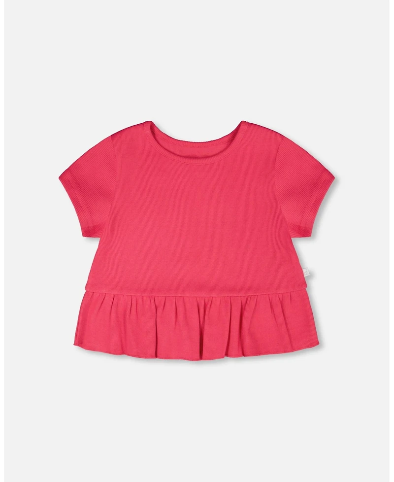 Deux Par Deux Girl Rib Crop T-Shirt with Frill Pink - Child