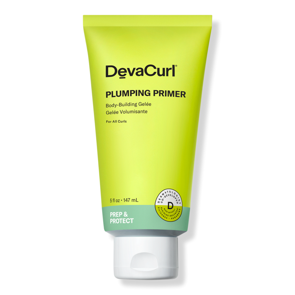 DEVACURL PLUMPING PRIMER 5OZ. Benefits: Gives all curls ultimate curl flexibility. Provides body. Makes hair appear fuller & plumps curls. Encourages curl shape & definition. Features: Amino Acid Complex enhances curl body and shape, controls and reduces frizz, maintains shine, improves manageability & combability. Dermatologist co-developed, backed by science & stylist approved. Tube made from 30% recycled plastics. A warm, tropical Cozy Getaway scent that starts with notes of coconut water, casaba melon (a blend of honeydew and cantaloupe), gardenia petals and bitter orange & finishes with warm amber and vanilla bean. Gluten-free. Formulated Without: SLS/SLES sulfates. Silicones. Parabens.