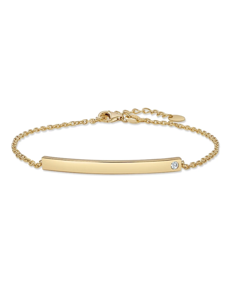 Devata Id bar chain bracelet with cubic zirconia crafted in solid 14k yellow gold.