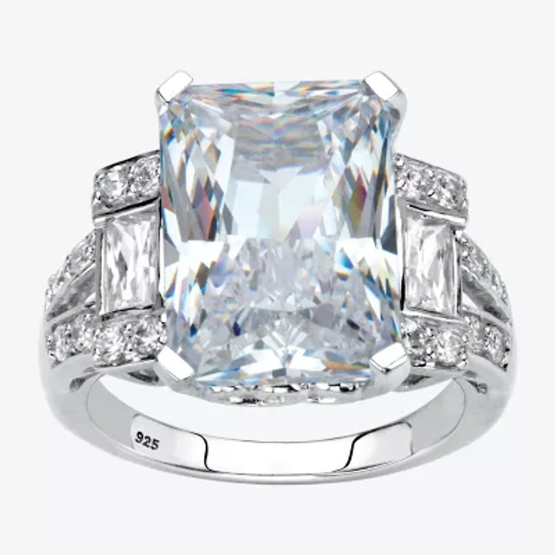 Diamonart Womens Cubic Zirconia Platinum Over Silver Rectangular Cocktail Ring