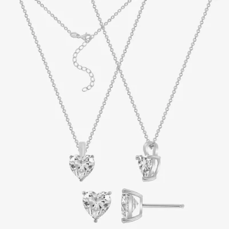 Diamonart Womens Cubic Zirconia Sterling Silver Heart 2-pc. Jewelry Set