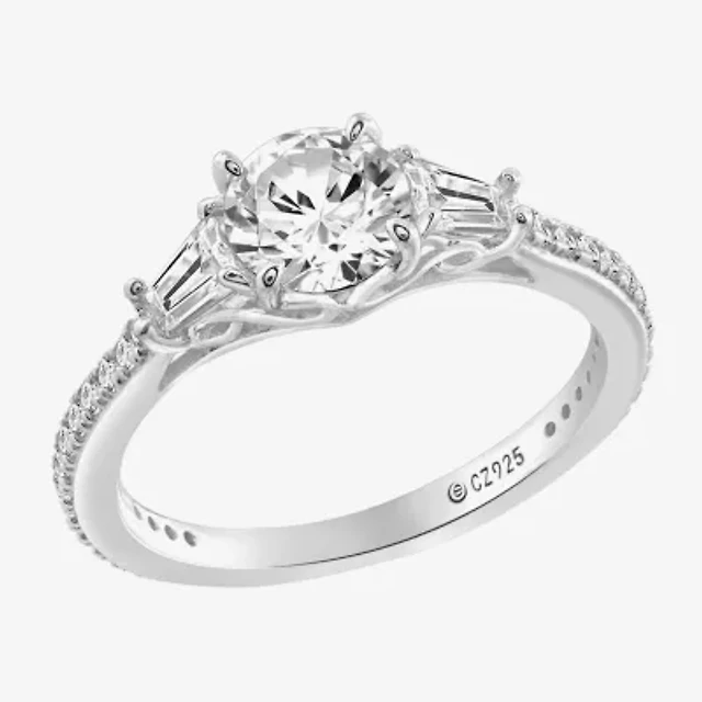 Diamonart Womens Cubic Zirconia Sterling Silver Round 3-Stone Engagement Ring