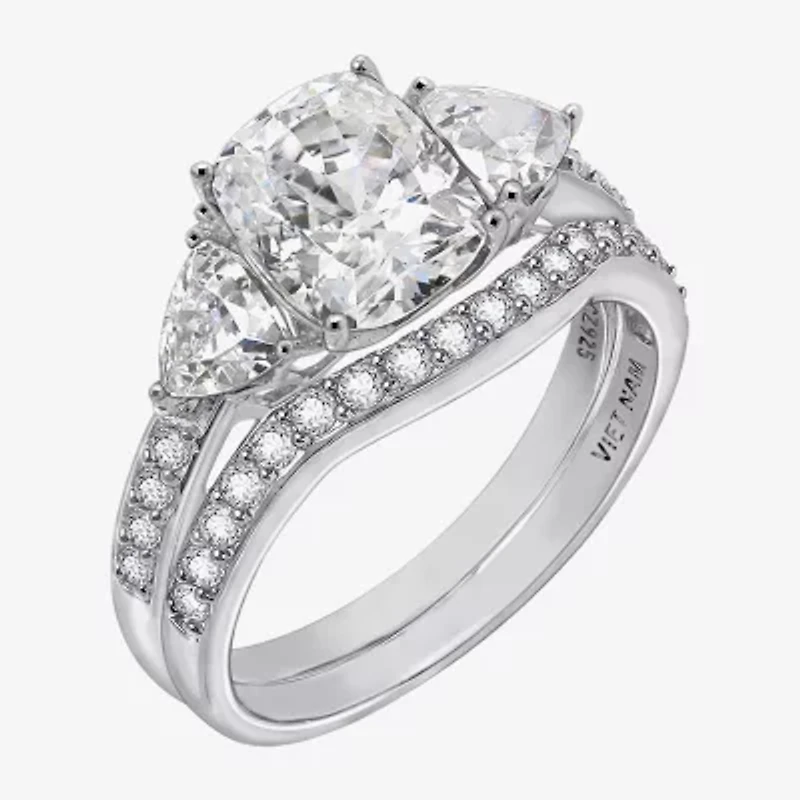 Diamonart Womens Cubic Zirconia Sterling Silver Side Stone 3-Stone Bridal Set