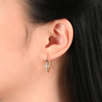 Womens Cubic Zirconia 18K Gold Over Silver 25.1mm Round Hoop Earrings