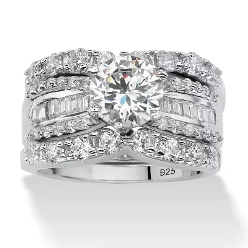 DiamonArt® Womens 5 1/ CT. T.W. White Cubic Zirconia Platinum Over Silver Round Bridal Set
