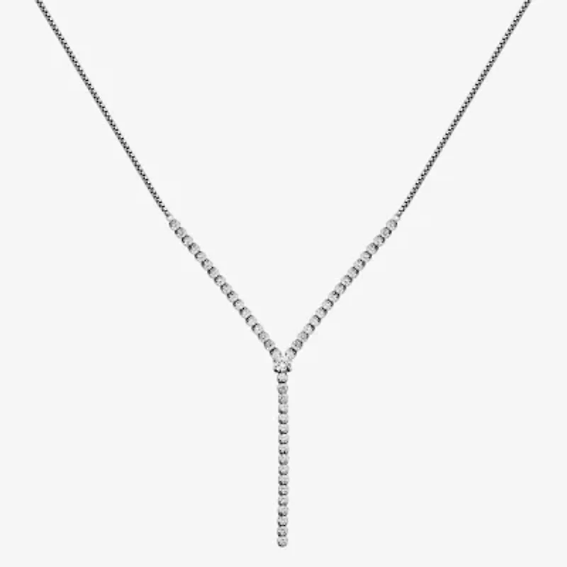 DiamonArt® Womens White Cubic Zirconia Sterling Silver Cross Y Necklace