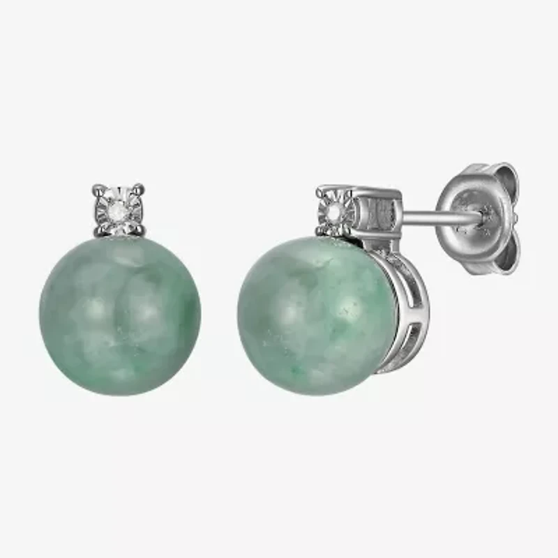 Diamond Accent Genuine Green Jade Sterling Silver 10.3mm Stud Earrings
