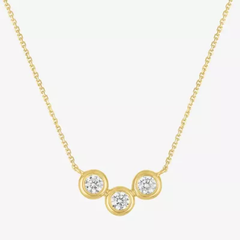 This Diamond Addiction pendant necklace is crafted in 10K yellow gold and features 3 Lab Grown white diamonds. Its cable construction and spring ring clasp closure make it perfect for everyday wear.