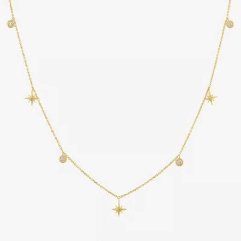 Indulge in the heavenly allure of the Diamond Addiction women's necklace. Crafted from 10K yellow gold, it features 4 round-cut, white diamonds in a bezel setting and 3 petite North Star charms adorning the adjustable cable chain. The spring ring clasp ensures a snug fit wherever you go.