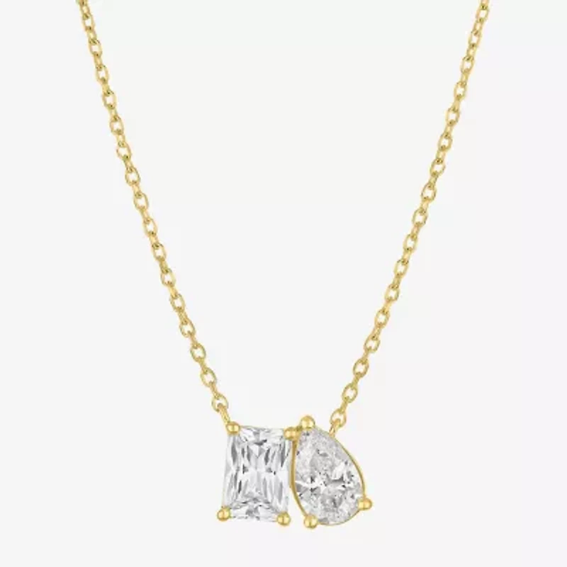 This glamorous Diamond Addiction pendant necklace for women embodies a timeless vintage style with a modern twist. Crafted from 10K Yellow Gold, it features a toi et moi pendant design with pear and emerald cut Lab-Grown Diamonds for 2 carats in total. Team it with the matching pair of stud earrings for a complete look.