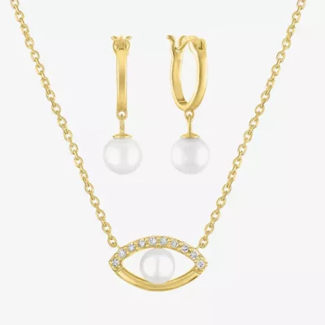 Diamond Addiction (G-H / Si2-I1) Womens Accent Lab Grown White Cultured Freshwater Pearl 14K Gold Over Silver Sterling Evil Eye 2-pc. Jewelry Set